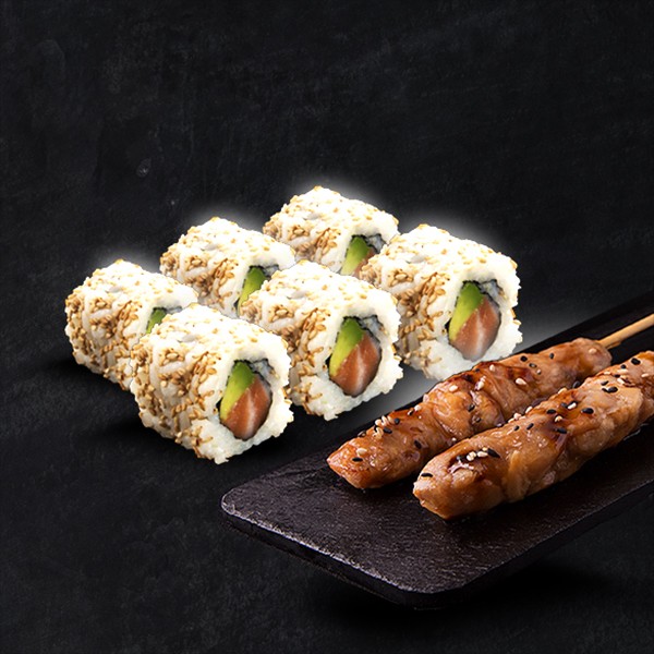1 Roll * au choix ( 6 ou 8 pcs ) + 2 Yakitori au choix + boisson